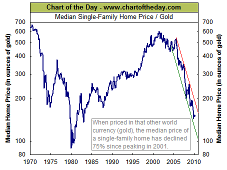 Le prix d’une maison US exprimée en or sur 40 années / source : http://pragcap.com/home-prices-in-gold (cliquez sur le lien)