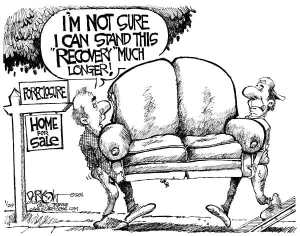 «Pendant que l’économie américaine continue de prendre du mieux, le marché immobilier demeure clairement en récession aux États-Unis. L’indice du prix des maisons Case Shiller indique mardi que le marché immobilier américain effectue un retour en récession (is double dipping) en affichant un repli pour un cinquième mois de suite. Ce n’est toutefois pas une grande surprise compte tenu de l’inventaire massif de résidences sur le marché.»
