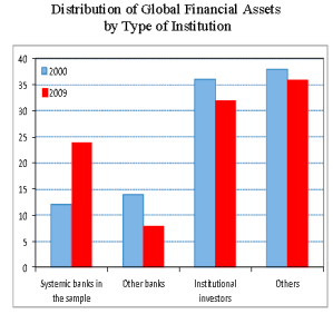 Le graphique est spectaculaire car il montre la part très significative et en très forte croissance depuis 2000 des actifs financiers mondiaux détenus par les SIFI.