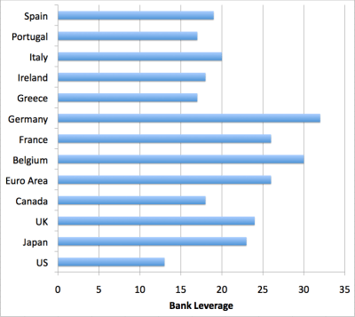 source The data come from the IMF Global Financial Stability Report of April 2011, Table 1.1. « Leverage is defined as tangible assets to tangible common equity for domestic banks. »/Early Warning