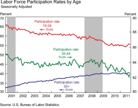Le chômage baisse car le BLS sort les chômeurs des statistiques de la force de travail à un rythme accéléré, , 1 200 000 personnes ne sont plus considérés comme intégrés au pool de travail. La labor force est à un plus bas de 30 ans à 63,7% de la population active!