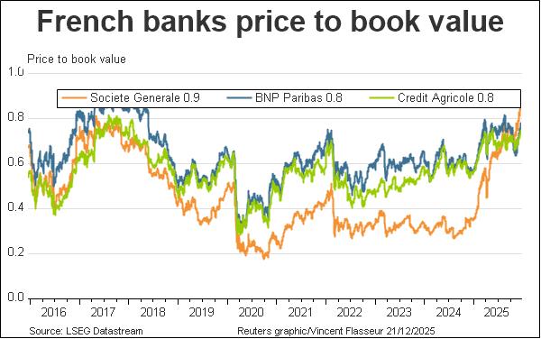Il nous parait probable que l’on ira au-delà des achats de bonds souverains et que l’on mettra en place des tourniquets et subterfuges pour recapitaliser, par la monétisation, le secteur bancaire. Ce n’est pas un hasard si, depuis quelque temps, cette idée d’un contrôle européen du secteur bancaire fait son chemin, elle est complémentaire de la recapitalisation directe ou indirecte par la monnaie. Regardez les cours des valeurs  du secteur bancaire depuis quelques temps. Ils parlent d’eux-mêmes.