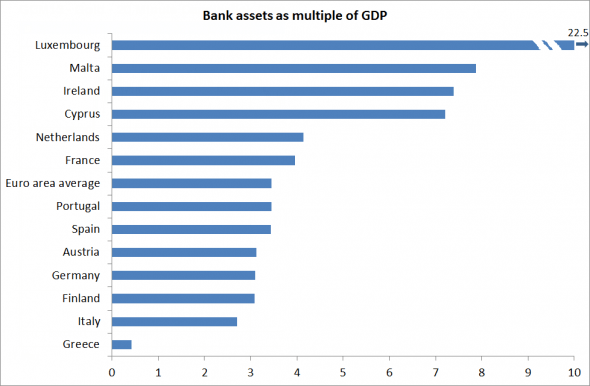 Des pays tres bancarisés comme le Luxembourg n’ont que très peu de risques. Les banques y ont des actifs fantastiques en gestion par exemple et leurs passifs sont constitués de ressouces stables. Elles ne font quasi pas de transformation court/long, très peu de prets, le risque devises est assumé par le client etc. Ces banques ne vivent pas de spreads, mais de commissions. Beaucoup ne font aucun prets. Leurs placements courts terme sont surcollétéralisés. Ce sont des établissements d’investissement.
