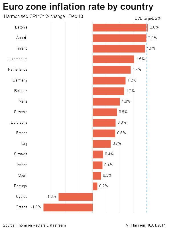 Selon des chiffres également publiés par la BCE, la croissance de la masse monétaire M3, indicateur avancé de l’inflation en zone euro, elle a nettement décéléré, à +1% en décembre après +1,5% en novembre. C’est loin des pronostics des analystes qui attendaient ainsi une hausse de 1,7% de cet indicateur. «C’est un niveau très faible», a souligné Howard Archer, qui ajoute que cet indicateur s’éloigne davantage encore de l’objectif d’une croissance de 4,5% du M3 affiché par la BCE et «maintient donc l’inquiétude de voir l’inflation continuer de se situer bien en-deçà de l’objectif de 2%».