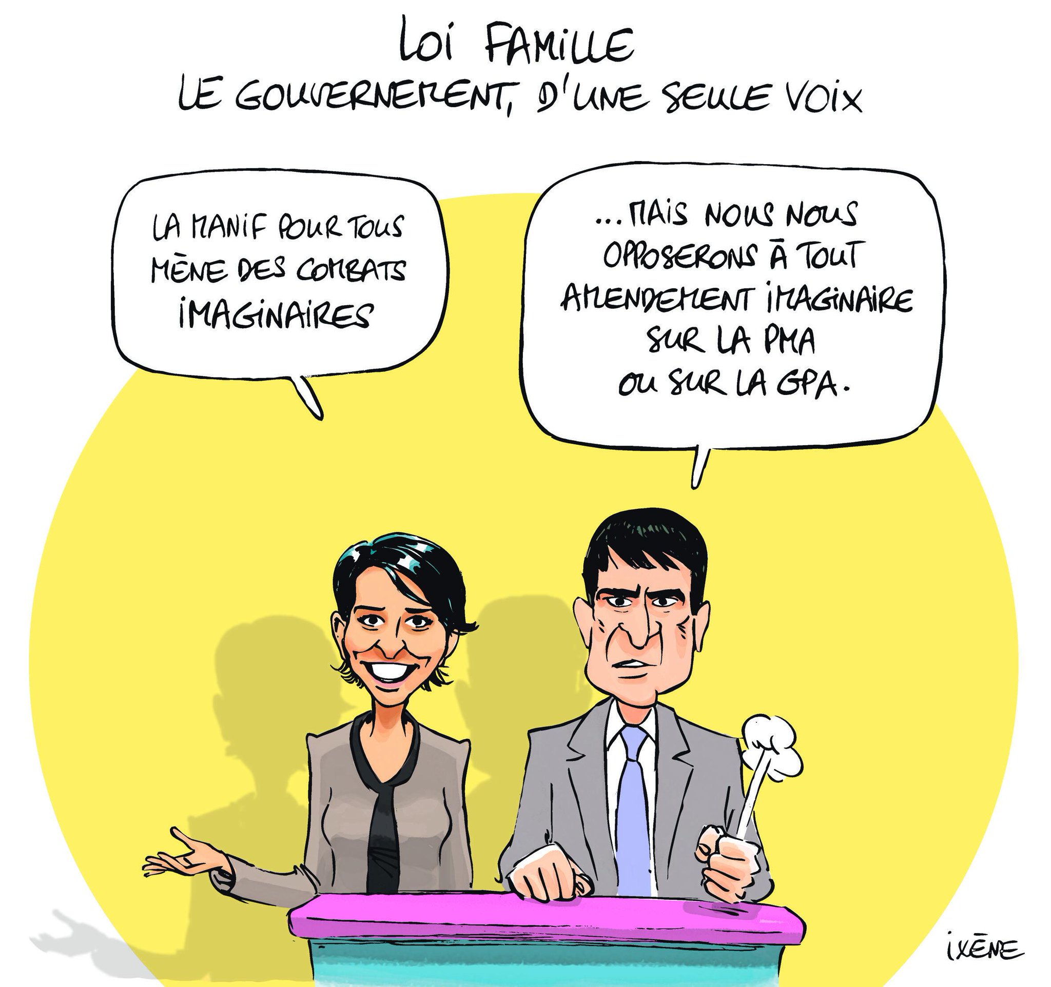 Au lendemain de la Manifestation qui a réuni les opposants aux réformes sociétales et à la dictature du dés(ordre) moral, le gouvernement a fait savoir qu’il n’était nullement question de PGA ou autre forme de procréation assistée. Immédiatement, ceux qui se proclament les « progressistes » ont protesté et signifié qu’ils réintroduiraient ces dispositions sous forme d’amendements au projet de loi sur la famille. Le gouvernement a riposté et annoncé qu’il voulait interdire ces amendements. Ayrault et Valls ont fait savoir qu’ils renonçaient purement et simplement au projet de loi sur la famille pour le court et moyen terme. La grogne règne au sein du PS et des écologistes. L’ultragauche stigmatise la victoire des fascistes.
