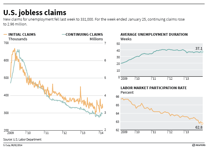 • La participation au marché du travail, la Labor force continue de chuter, on est à 63% contre 66,4 en 2006.