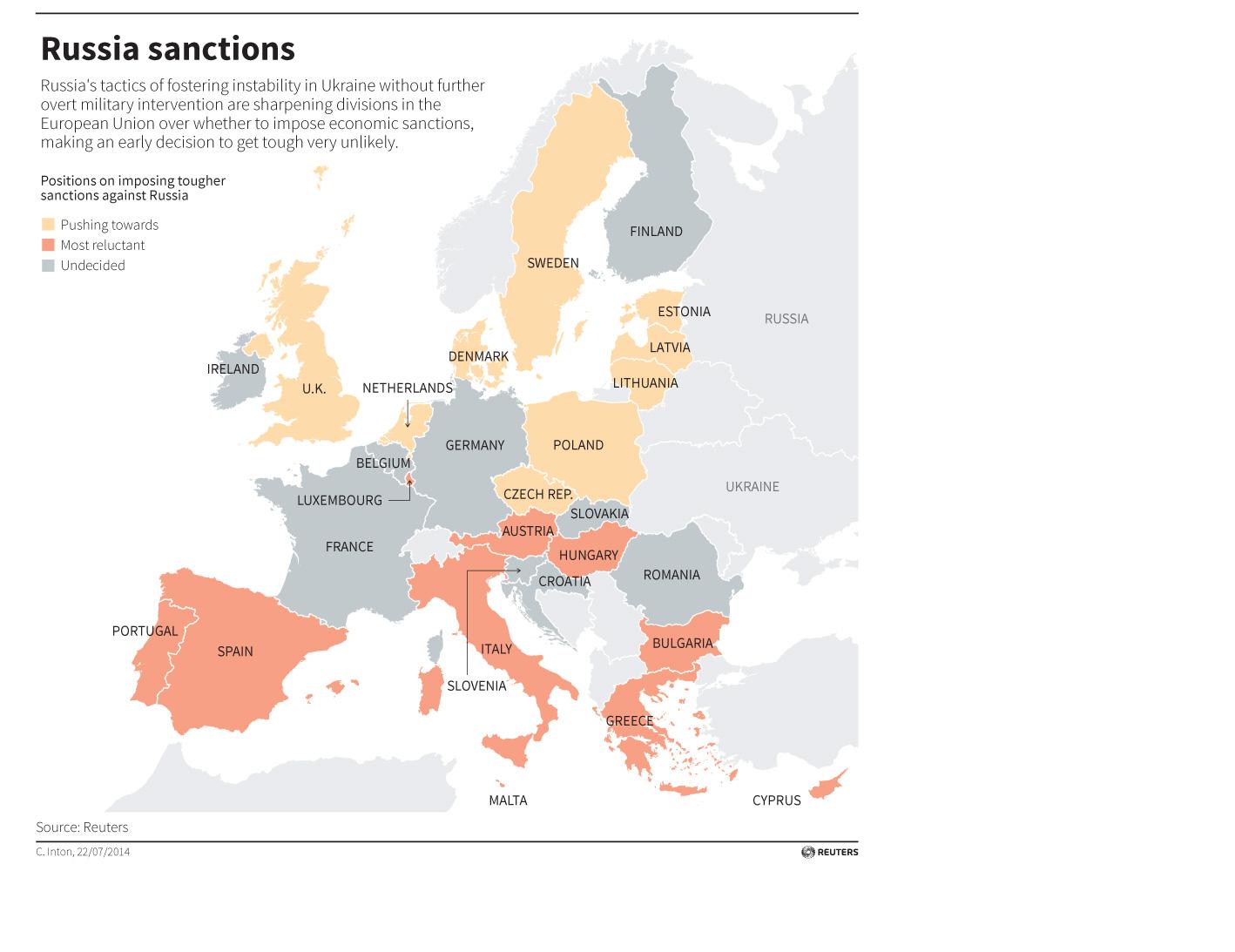 Les nouveaux Etats membres de l’UE, tous d’anciens satellites de l’Union soviétique défunte, sont des partisans avoués de sanctions plus fermes. Ils restent très dépendants de la Russie, plus particulièrement en énergie, mais acceptent de subir les conséquences.