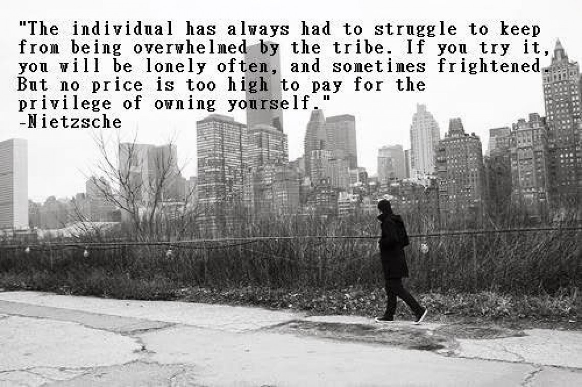 Nietzsche ajoute : « aucun prix n’est trop élevé pour accéder au privilège d’être propriétaire de soi-même ». C’est l’inverse du sens commun et de la philosophie classique qui dominent en France : l’homme ne nait pas libre, au contraire, il nait dans un groupe, il est prisonnier du groupe, il est la chose du groupe, il n’est qu’un élément dans la masse, mais, et c’est le mais qui est important, par un effort considérable, il peut dépasser ce statut et devenir un individu. Un être propriétaire de lui-même, comme il dit.