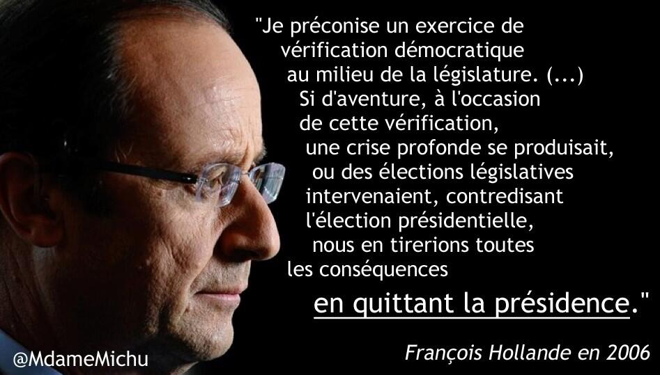 La Cinquième République était conçue pour donner certes beaucoup de pouvoirs au Président, mais c’était à condition que, de temps à autre, il vérifie sa légitimité. Ici on voit le pouvoir, ses détournements, mais pas la vérification de la légitimité. On gouverne, on fait des choix fondamentaux qui engagent les générations à venir avec 14% d’approbation!