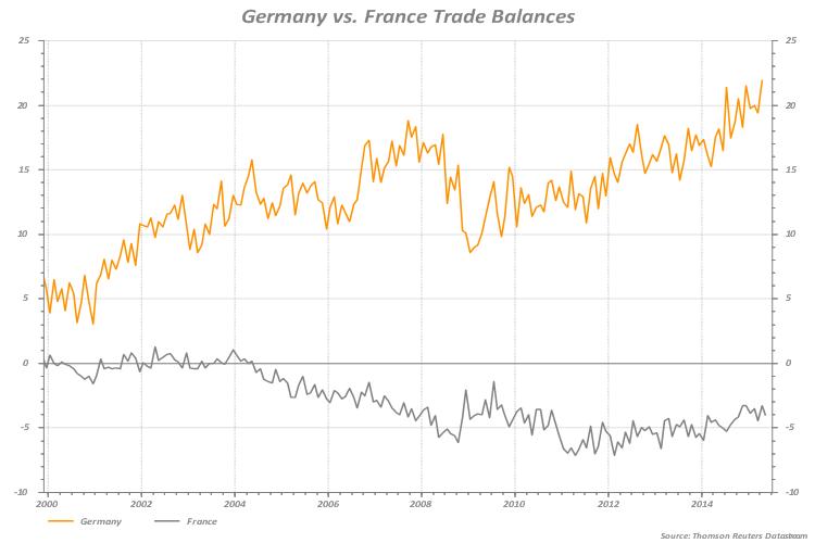 L’Allemagne n’a-t-elle pas profité du manque de compétitivité des pays périphériques? Elle a connu, selon Zerohedge, un «âge d’or de son industrie d’exportation, grâce à une monnaie unique plus faible que le mark».