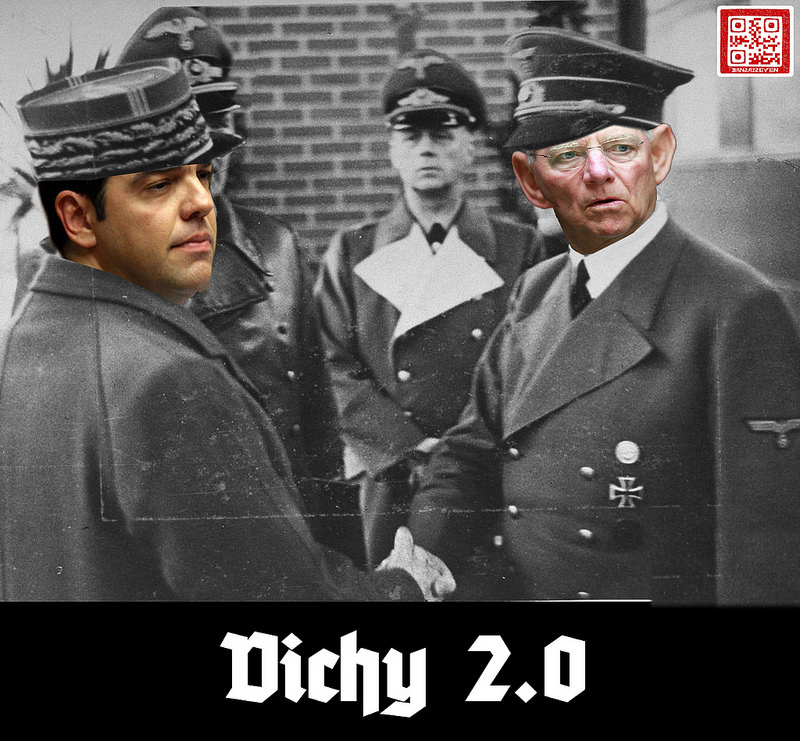 Le Parti Grec Indépendant a été jusqu’à qualifier l’opération Allemande de coup d’état. Et la résonance est grande. Il a annoncé qu’il se retirait de tout et ne collaborerait dans aucun domaine. Car le mot qui devient à la mode est bien celui-là : Collaboration.