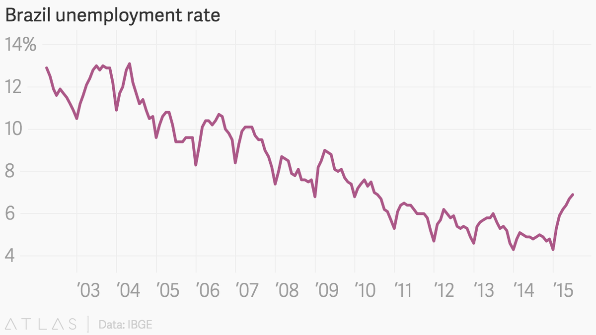 Alors que le pays souffre d’un climat politique crispé par les révélations autour du scandale de corruption touchant le géant pétrolier public Petrobras, tous les indicateurs économiques restent dans le rouge, y compris celui, très sensible, du chômage, dont le taux a augmenté en mai à 6,7%, atteignant son niveau le plus élevé pour ce mois depuis 2010.