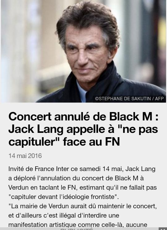 En tous cas, beau coup de pub pour Black M, typique homme d’affaire à la Jay Z, dont les postures et les provocs font parties d’un scénario bien huilé et qui sera certainement grassement dédommagé suite à cette annulation…ou quand les socialistes se font complices du capitalisme le plus débridé!