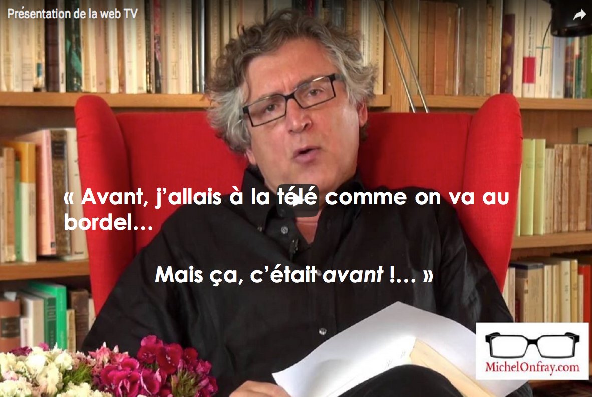 Michel ONFRAY. – Pour disposer de temps afin de développer des argumentations et des démonstrations, ce qui est impossible dans un média dans lequel le temps c’est de l’argent. Et souvent: beaucoup d’argent… Dès lors, dans un média classique, ce qui est visé est moins l’information, vraie ou fausse d’ailleurs, que le spectacle susceptible de créer le buzz. Autrement dit, il faut obtenir le maximum de consommateurs devant leur écran à l’heure où le clystère publicitaire se trouve infligé. Or on n’obtient pas un public massif avec de l’argumentation ou de la démonstration, mais avec de la grossièreté ou du dérapage, de l’insulte ou de la haine, du mépris ou de la boxe. Quand jadis Paul Amar apportait sur un plateau une paire de gants de boxe, il montrait ce qu’étaient vraiment les choses. On l’a d’ailleurs congédié pour avoir dénudé le roi. Il faut désormais cogner, en dessous de la ceinture si l’on veut, pour obtenir le vacillement ou le k.-o. de l’adversaire. Ce média que j’initie avec mes amis s’adresse à tous ceux qui veulent prendre le temps d’entendre des arguments sur les questions d’actualité afin de se faire un avis par eux-mêmes, mais aussi sur mille autres sujets qui constituent les séminaires de l’UP.