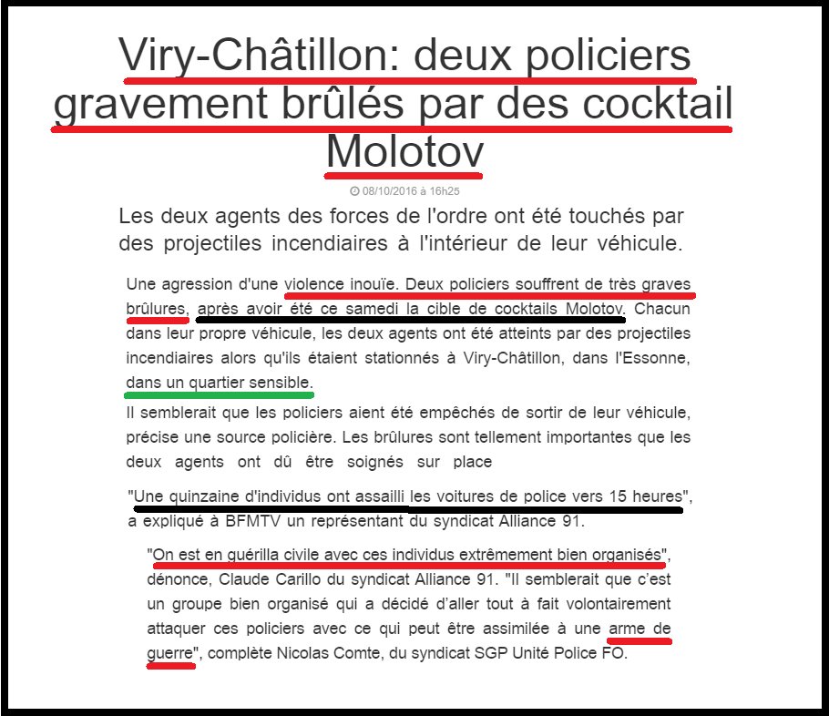 Je relie cette phrase avec ce fait divers: « Une énième permanence socialiste a été vandalisée dans la nuit de samedi à dimanche à Montpellier,…Ce n’est pas la première fois que cette permanence est saccagée. » (http://tempsreel.nouvelobs.com/en-direct/a-chaud/28622-montpellier-nouvelle-permanence-vandalisee.html) . Je lie cet évènement à celui de Viry-Chatillon. Le PS français a joué et joue avec le feu, il est donc logique qu’il soit brûlé de temps en temps. Ça n’excuse en rien les auteurs de ces dégradations imbéciles mais compte-tenu de l’évolution de la société, de plus en plus nombreux sont ceux qui vont réellement choisir leur camp avec des choix et surtout des comportements pas forcément heureux pour la quiétude de la vie sociétale. Il faudra tôt ou tard présenter l’addition aux vrais fauteurs de troubles sinon, la situation ira en empirant. Dans ce domaine, gauche et droite sont renvoyées dos à dos.