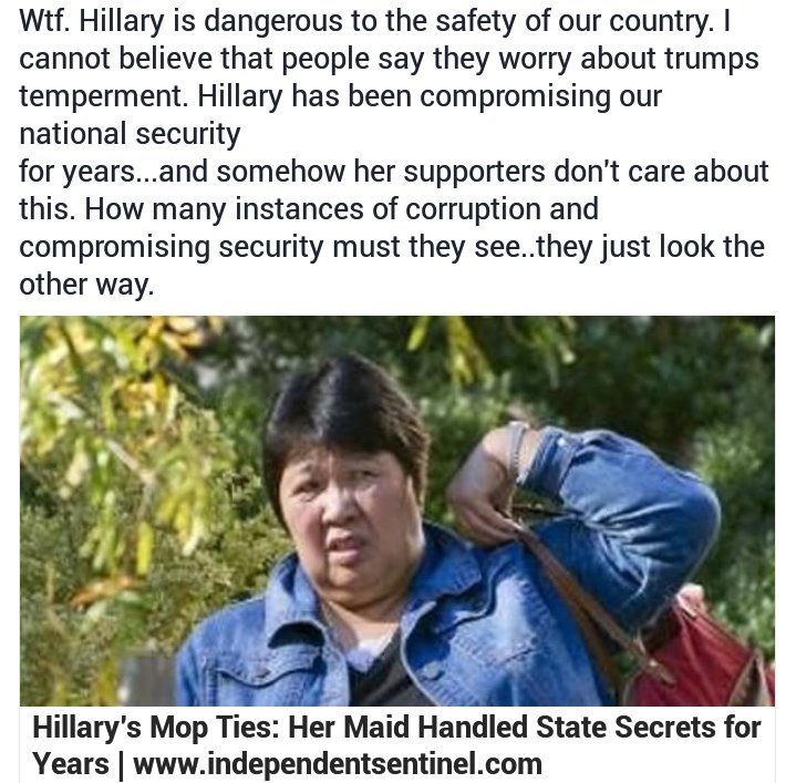 Mais Clinton s’en moque parce qu’elle ne respecte ni la loi— elle se considère au-dessus des lois et elle a bien raison puisqu’elle n’est pas inquiétée— ni ses obligations de protéger les intérêts vitaux de la nation et les informations secrètes qui passent entre ses mains, et là encore elle a raison cela ne gêne pas les électeurs de vouloir lui confier des informations encore plus secrètes et la totalité des intérêts vitaux du pays.