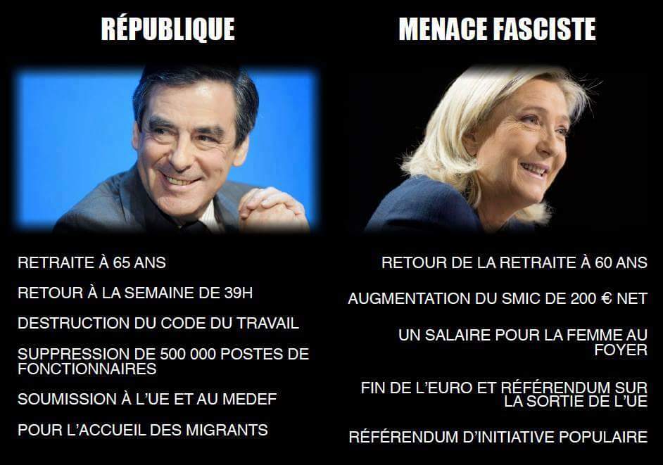 Le rôle naturel de Marine Le Pen est de s’adresser à une France périphérique qui se sent aujourd’hui exclue et abandonnée, qui voudrait voir embaucher plus de gendarmes, de policiers, de pompiers, d’infirmières et d’enseignants, qui ne veut pas travailler plus pour gagner moins ni voir démanteler les derniers mécanismes de protection sociale auxquels elle peut encore avoir accès. Cette France périphérique ne se reconnaîtra jamais dans un représentant de la bourgeoisie traditionnelle. Contre Fillon l’ultra-libéral, le FN n’a donc qu’une chose à faire : durcir et amplifier impérativement sa critique du libéralisme.