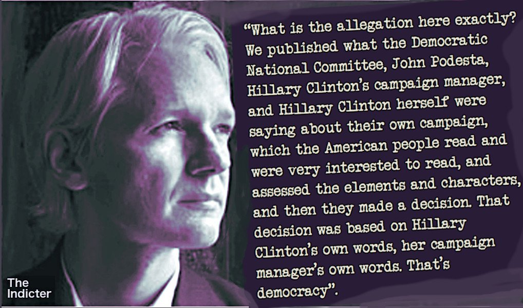 Le fondateur de WikiLeaks a également rejeté les accusations selon lesquelles son organisation avait coopéré avec la Russie ou avec un autre État pour pirater les courriels du parti démocrate et de l’ex-candidate démocrate à la présidentielle Hillary Clinton.