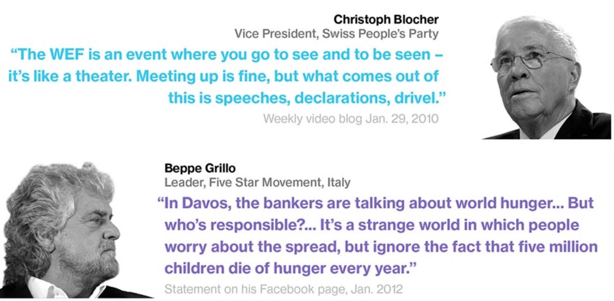 Le résultat du vote Brexit, le vote contre Renzi, l’élection de Trump, la dislocation de l’unité aux Etats Unis, la position de Marine le Pen dans les sondages, la montée du parti Alernativ fur Deutschland, tout cela ce sont des produits de Davos.