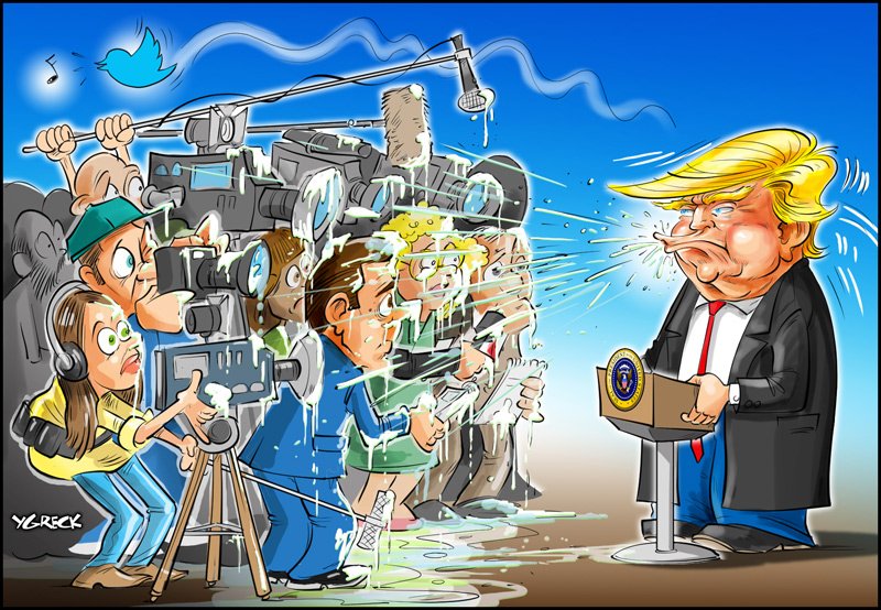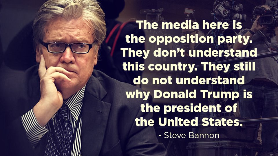 « Donc, la presse est le vrai parti d’opposition (les démocrates ne comptent plus). Et ce nouveau parti de la haine et de la désinformation s’acoquine avec les groupes d’intérêt qui profitent de notre crise, avec le soutien de certains éléments félons des services secrets, en vue de déstabiliser, fuites à l’appui, le seul représentant du peuple qui prouve qu’il tient ses promesses sur les fronts du travail, de l’économie, de la sécurité des frontières, comme de la défense nationale.
