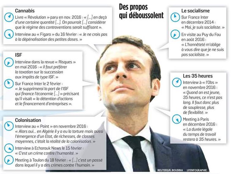 Ces anecdotes illustrent l’impunité de la caste qui se donne en exemple. Quand Emmanuel Macron, en visite en Algérie, dit de son pays qu’il s’est rendu coupable, avec la colonisation, d’un « crime contre l’humanité », le candidat des « modernistes » avalise une contre-vérité humaine et juridique. Il se prête à un révisionnisme dans le dessein électoral de séduire des Français musulmans dont une partie a choisi de rejoindre, en France, le prétendu bourreau. Le cynisme de ce faux gentil, bouée de secours du Système en péril, a d’ailleurs atteint des sommets, samedi à Toulon : devant des pieds-noirs ulcérés, Macron a dit : « Parce que je veux être président, je vous ai compris et je vous aime. » Cette désinvolture, qui reprend une expression du général de Gaulle de 1958 annonçant la trahison de sa parole, n’a choqué personne chez ceux qui ne s’incommodent de la sottise que chez les « ploucs » d’en face.