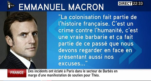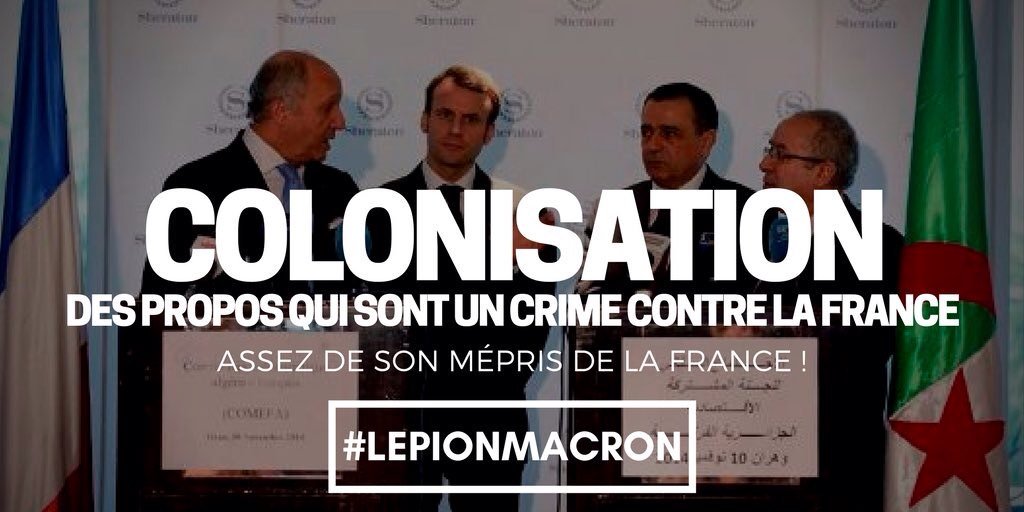 Cette semaine le néo président Macron fils de Hollande 1er n’a eu de cesse que de s’attaquer à la France, à son cœur et à son âme : négationnisme et révisionnisme historiques étant comme chacun sait les 2 mamelles préférés du parfait petit mondialiste….