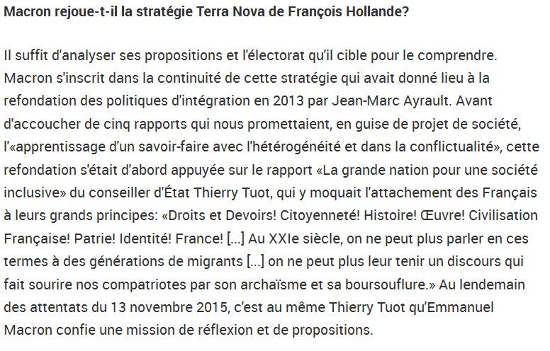 Emmanuel Macron en matière d’immigration, de laïcité, d’intégration, est le candidat du rapport Tuot au même titre que Benoît Hamon