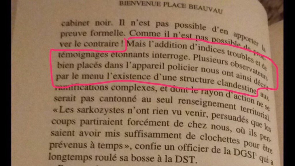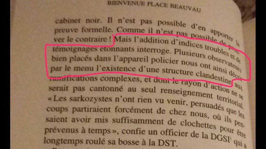 […] Quant à la Place Beauvau, elle est nécessairement dans la boucle dès le départ, puisque ce sont les fameux policiers de la Division nationale de l’investigation financière et fiscale, devenue l’Office central de lutte contre la corruption, les infractions financières et fiscales, qui ont branché les téléphones de l’ancien président, puis retranscrit ses conversations, tout en le géolocalisant en temps réel.