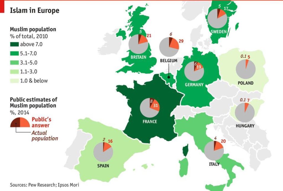 Pour l’historien David Engels, l’Europe aura le destin de l’ancienne République romaine : la guerre civile. Partout, les signes de fracture sautent aux yeux. Les djihadistes s’attaquent aux libertés et aux démocraties laïques. La crainte envahit l’imaginaire collectif des Européens. Une enquête en ligne menée dans dix pays européens sur un panel de plus de 10.000 personnes a révélé une opposition croissante de la population à l’immigration musulmane. L’Institut royal des affaires internationales de Chatham House qui a mené l’enquête a souhaité savoir si « les mouvements migratoires en provenance de pays musulmans devaient être stoppés ». Tous pays confondus, la réponse a été positive à plus de 55% .