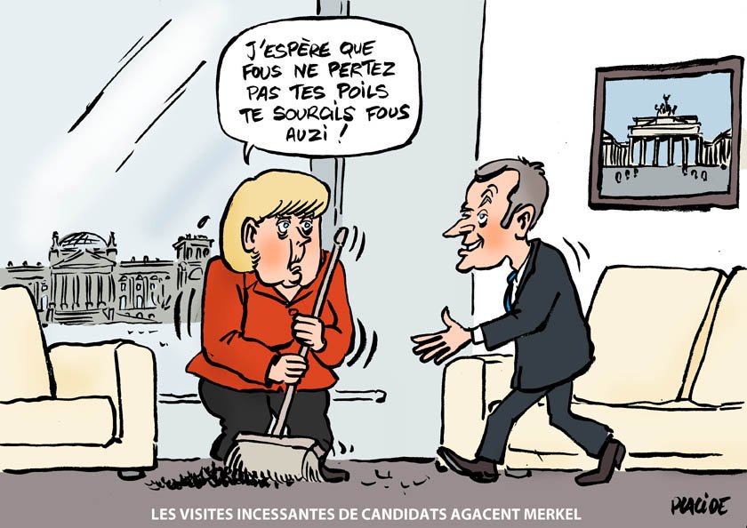 On connaît l’attirance d’Emmanuel Macron pour les femmes mûres. Cela tombe bien, madame folledingue (alias Angela Merkel) en est une. Et un véritable coup de foudre semble s’opérer entre les deux laissant deviner que sous cet attelage l’Europe plongera vers davantage de mondialisme, de libéralisme et de haine de soi.Si Angela Merkel et son gouvernement ne cachent plus leur soutien explicite au candidat d’ »En Marche ! », Emmanuel Macron de son côté avait déjà affirmé il y a plusieurs semaines qu’en matière d’immigration il aurait commis la même folie que la chancelière : à savoir accueillir des centaines et des centaines de milliers de clandestins et qu’il ne trouvait rien à redire à ce suicide collectif. Cette semaine il a été encore plus clair, une fois n’est pas coutume. Si il devient président il ne faudra pas compter sur lui pour s’opposer à l’hégémonie allemande en Europe : « Je ne vais pas dire aux Français que je vais défendre leurs intérêts face à Berlin ». CQFD.