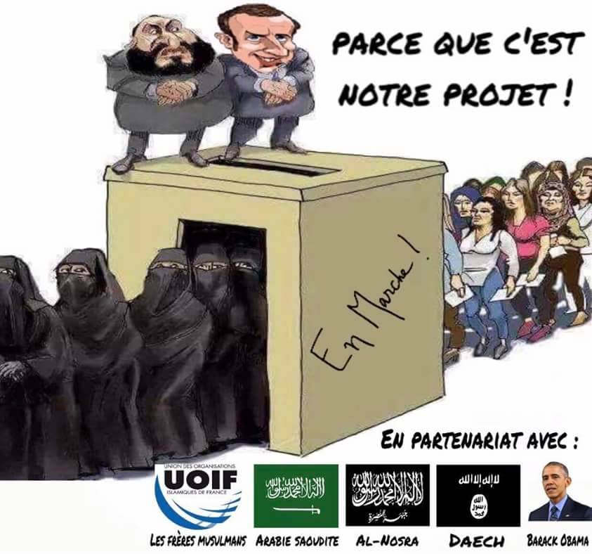 Comme je l’ai décrit à de nombreuses occasions nos maîtres (qui sont ceux aussi de Macron qui est littéralement leur GOLEM (1)) nous offrent dans le plus pur style télé-réalité une saison politique truffée de rebondissements. On a vu des primaires chaotiques ou les favoris s’effacent, un Fillon abattu en plein décollage électoral par un missile sortie vraisemblablement des tuyères de Bercy ou le PS a eu 5 ans pour préparer son attaque. En sursis, le PS, Hollande le suicidé et son « cabinet noir » balancent sur la place médiatique spécialisée dans les règlements de compte -le Canard enchaîné- une salve thermonucléaire ou on apprend que le vertueux Fillon faisait fonctionner sa petite entreprise familiale aux frais du contribuable. Pas en reste, le PS se dissolvait comme un aspro dans un verre d’eau et vomissait Valls. Perdant les primaires, il prenait le large pour rejoindre un proxénète plus rentable. On a entendu Bayrou critiquer ouvertement Macron pour ses liens incestueux avec la haute finance puis baisser pantalon pour de belles promesses qui restent à éclaircir… ce prix du consentement au viol de sa dignité.