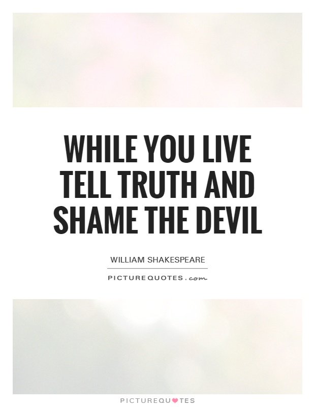 « While you live, tell truth and shame the Devil ! » (Tant que tu vivras, dis la vérité et couvre de honte le Diable).
