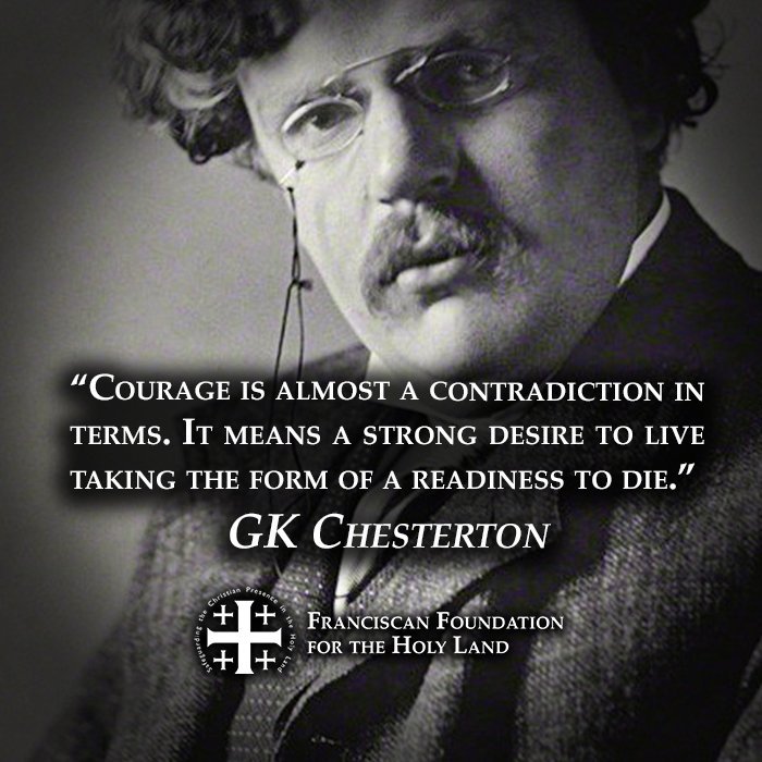 Bien que le combat paraisse inégal au premier abord, devant tant de cynisme et d’aveuglement, je crois férocement que ceux qui se montreront suffisamment braves pour la porter sur les fonts baptismaux n’en seront que récompensés in fine, même s’ils connaîtront maints ennuis le long du chemin. Chesterton évoquait ceci sur la notion de courage :