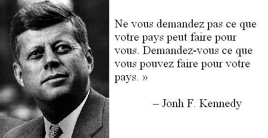 « Ne vous demandez pas ce que votre pays peut faire pour vous, mais demandez-vous ce que vous pouvez faire pour votre pays ».