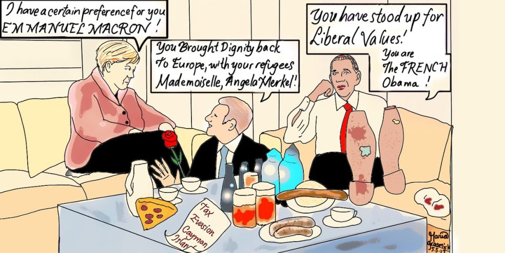 Une façon de remettre Emmanuel Macron à sa vraie place après son interminable poignée de main surmédiatisée à Donald Trump, un « moment de vérité » d’après l’hôte de l’Elysée qui par ailleurs n’a pas hésité à comparer le président américain à Vladimir Poutine et à l’autocrate islamiste turc Recep Tayyip Erdogan. « Ma poignée de main (avec Trump, NDLR), ce n’était pas innocent. On doit montrer qu’on ne fera pas la moindre concession, même symbolique », a plastronné Macron en bon petit soldat de l’oligarchie globaliste, prétendant ainsi, façon banlieue chaude, « obtenir le respect ».