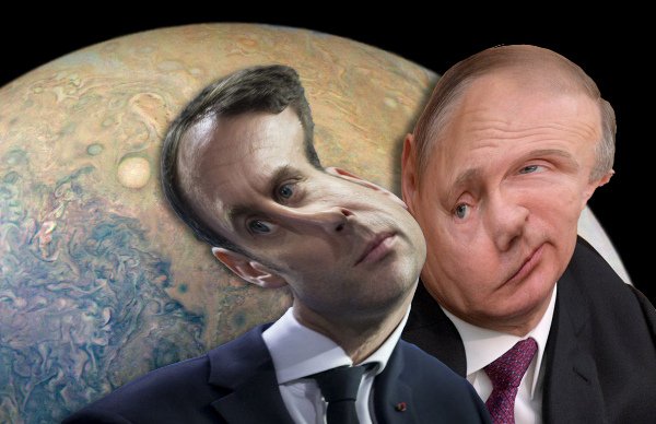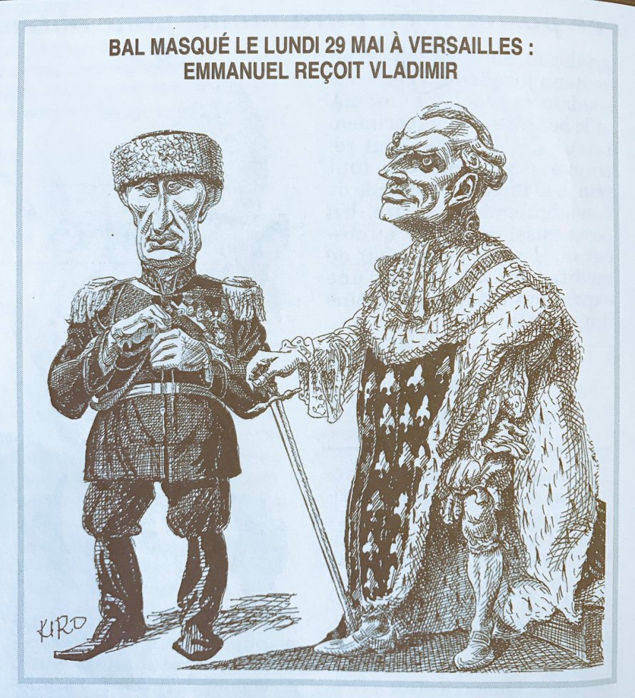 Nouvelle étape, donc, après la poignée de main avec Trump, voici la réception de Poutine à Versailles. Macron, ou le petit qui veut se faire aussi grand que les grands. Cela rappelle Tintin, De Gaulle, ou encore la vieille blague de Jules : « Qui c’est, le type en blanc à côté de Jules ? T’as vu, à côté de Macron, comme il est petit, Poutine ? »