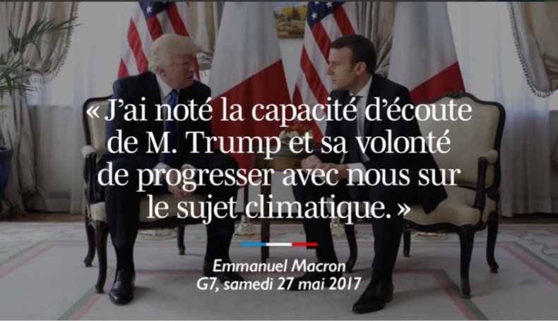 Trump défie le mythe du réchauffement anthropogénique, Macron champion du mondialisme