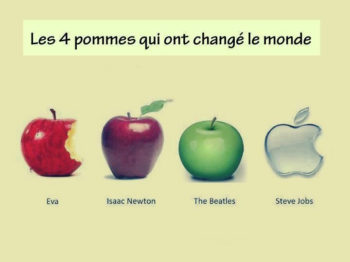 APPLE c’est donc la POMME, c’est la pomme de la connaissance mangée par Eve puis Adam à l’instigation du serpent (Lucifer, Iblis…). Ainsi, en goutant la pomme, leurs yeux (intellectuels) se sont ouverts. De l’état de pré-humain, selon la condition animale qui est aussi celle de leur innocence partagée, ils se découvrent ainsi nus et éprouvent une honte réciproque (symptôme univoque de l’entrisme d’une humanité dans un nouvel ordre ontologique). La pomme signifie la connaissance fulgurante qui ouvre une porte sur une réalité cognitive « supérieure » et dissociative (c’est la naissance du « MOI-JE »). Evidemment, cette évolution cognitive a un prix, sa « PART MAUDITE », puisqu’elle instaure une responsabilité des actes-pensées comme contrepartie à ce libre arbitre fraichement acquis. Le poids du libre-arbitre est contrebalancé par celui des fonctions instinctuelles. Pour rappel, cette rupture ontologique entre pré-humain et humain ouvre un nouveau champ d’expériences ou la « raison » devient le déterminant central de la survie de l’espèce et c’est par le développement de la croissance de l’instigateur « raison » qu’apparait une culture plus élaborée ainsi qu’un culte technologique. N’oublions pas que selon la tradition abrahamique, l’enseignement des arts, des lettres, de l’agriculture (sédentarisation), du maquillage (Enoch)… furent impulsés par Lucifer/Iblis…, c.à.d une autre version symbolique du serpent/dragon.