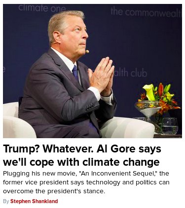 Al Gore était interviewé en raison de la sortie de la suite d’Une vérité qui dérange, An Inconvenient Sequel (« Une suite qui dérange »), fondée sur l’idée que les horreurs annoncées dans le premier épisode étaient en-deçà de la réalité.