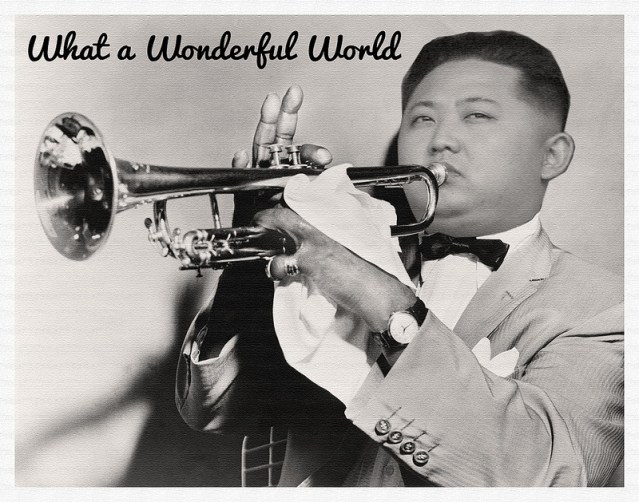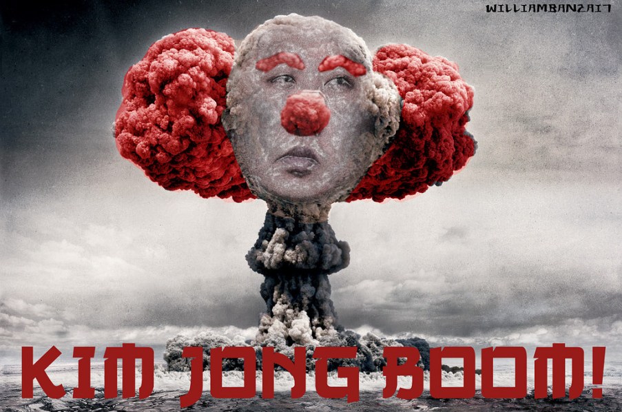 On a beaucoup ri à la scène du Dictateur, de Charlie Chaplin, où les personnages inspirés d’Hitler et Mussolini installés dans un salon de coiffure, chacun pour affirmer sa supériorité, s’élèvent alternativement d’un cran sur leur fauteuil : l’escalade verbale entre Trump et Kim Jong-un y ressemble. Sauf qu’il n’y est pas question de mousse à raser mais de missiles balistiques et de guerre nucléaire. La menace est concrète et fait trembler le monde : les médias occidentaux peignent depuis des années le dictateur asiatique en fou, et maintenant Trump en dingue tenté par la dictature. Ainsi depuis que Trump a promis le « feu et la colère » des Etats-Unis si Kim Jong-un persiste dans sa politique d’armement nucléaire, la toile s’agite autour d’une idée directrice : un fou, ça va, deux fous, la menace devient sérieuse.