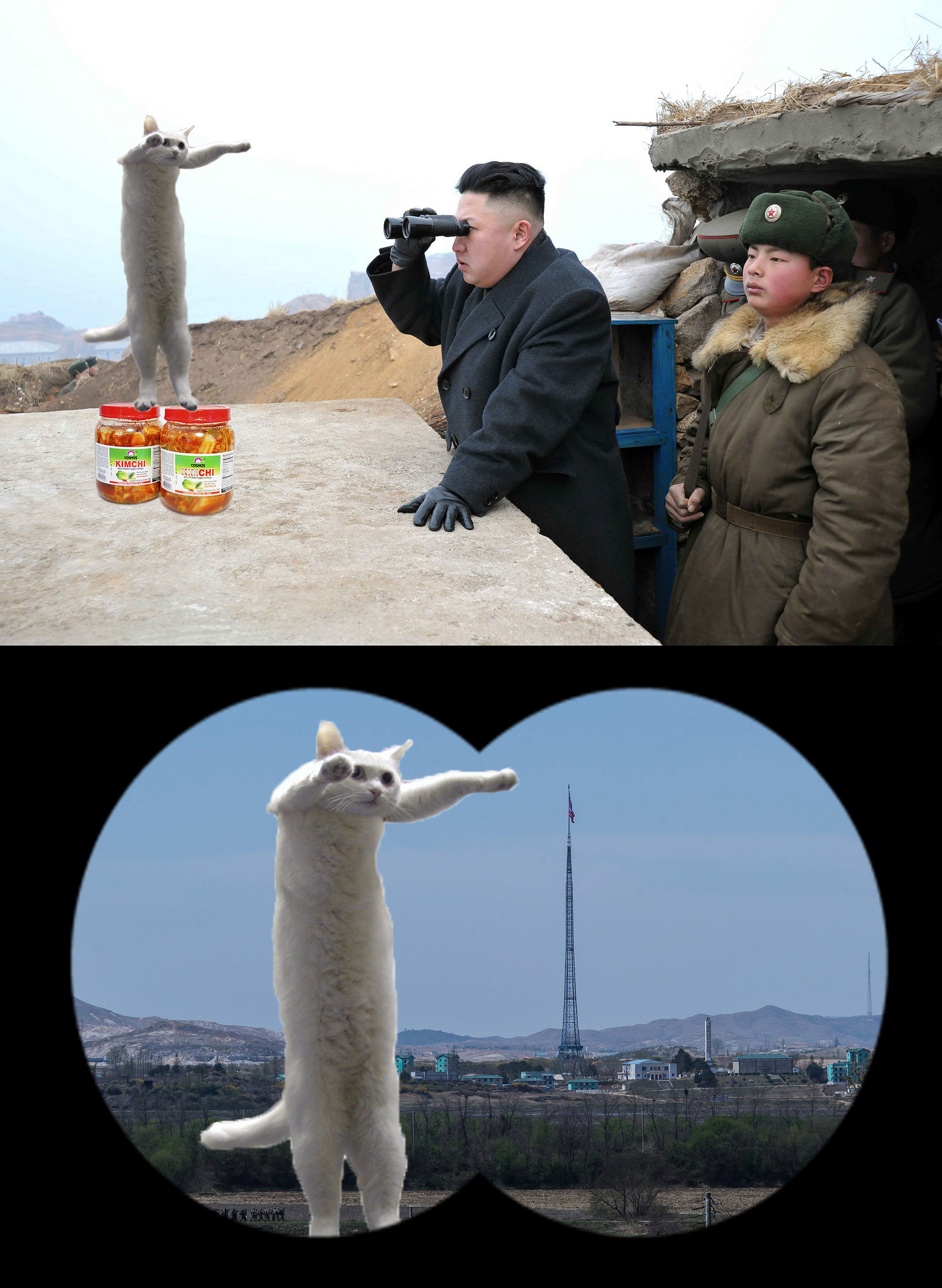 On a beaucoup ri à la scène du Dictateur, de Charlie Chaplin, où les personnages inspirés d’Hitler et Mussolini installés dans un salon de coiffure, chacun pour affirmer sa supériorité, s’élèvent alternativement d’un cran sur leur fauteuil : l’escalade verbale entre Trump et Kim Jong-un y ressemble. Sauf qu’il n’y est pas question de mousse à raser mais de missiles balistiques et de guerre nucléaire. La menace est concrète et fait trembler le monde : les médias occidentaux peignent depuis des années le dictateur asiatique en fou, et maintenant Trump en dingue tenté par la dictature. Ainsi depuis que Trump a promis le « feu et la colère » des Etats-Unis si Kim Jong-un persiste dans sa politique d’armement nucléaire, la toile s’agite autour d’une idée directrice : un fou, ça va, deux fous, la menace devient sérieuse.
