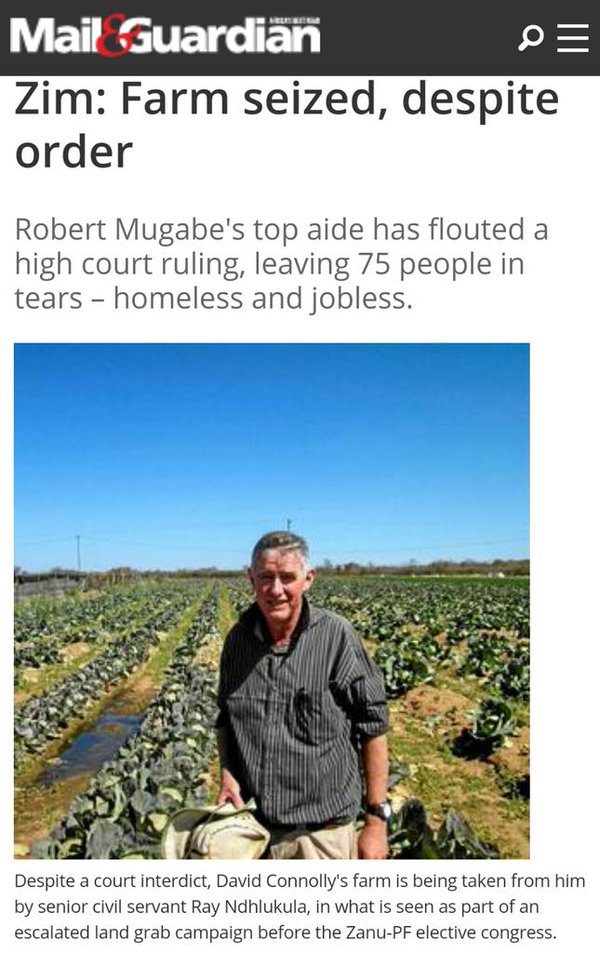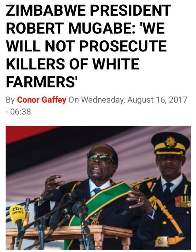 17 ans plus tard, rien n’a changé au Zimbabwe. Lors d’un meeting de son parti Zanu-PF en juillet 2014, Mugabe avait déclaré que les blancs ne devraient posséder aucune terre au Zimbabwe (« Nous disons non aux Blancs qui possèdent notre terre, et ils devraient partir. (…) Ne soyez pas trop gentils avec les fermiers Blancs. La terre est à nous, et non à eux. Ils devraient se lancer dans les industries et laisser la terre aux Noirs », avait alors déclaré Mugabe). Récemment, le président zimbabwéen a menacé de nouveau d’expulser tous les fermiers blancs qui avaient échappé à la dernière vague d’expropriations :