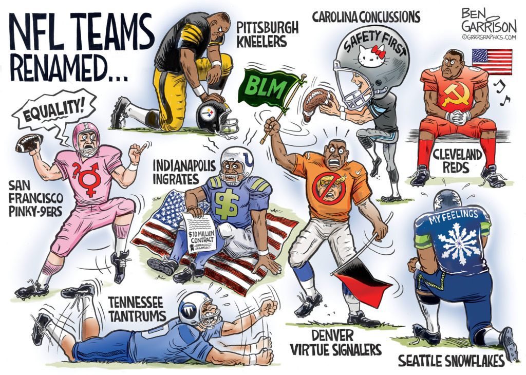 Ajoutez à cela la politisation rampante de la NFL au cours des dernières années avec ses simagrées de justice sociale, et je ne peux pas penser à une seule qualité rédemptrice concernant ces arènes. La meilleure chose qui pourrait arriver au système sportif des États-Unis serait que tout le système soit démantelé et reconstruit à partir de ces cendres avec des équipes vraiment locales composées de joueurs locaux, mus uniquement par le désir d’une excellence sportive et d’une saine concurrence.