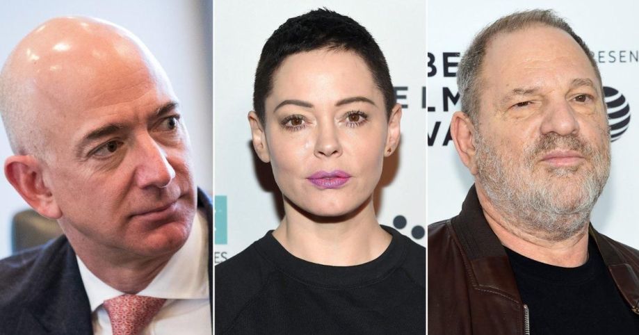 Jeff Bezos, PDG d’Amazon et propriétaire du Washington Post ; Rose McGowan violée par Weinstein et censurée par Amazon quand elle en a parlé, et Weinstein