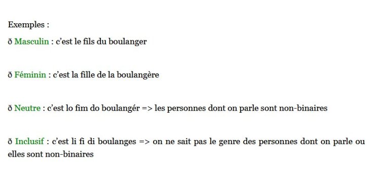 La querelle actuelle découle de ce fait très simple qu’il n’existe pas en français de genre neutre comme en possèdent le grec, le latin et l’allemand. D’où ce résultat que, chez nous, quantité de noms, de fonctions, métiers et titres, sémantiquement neutres, sont grammaticalement féminins ou masculins. Leur genre n’a rien à voir avec le sexe de la personne qu’ils concernent, laquelle peut être un homme.