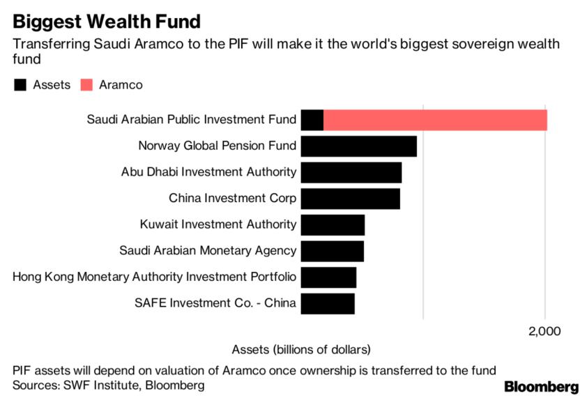 Le Graphique du Jour : Le royaume d’Arabie Saoudite veut transférer la propriété de la compagnie pétrolière nationale Aramco au Fonds d’investissement public.