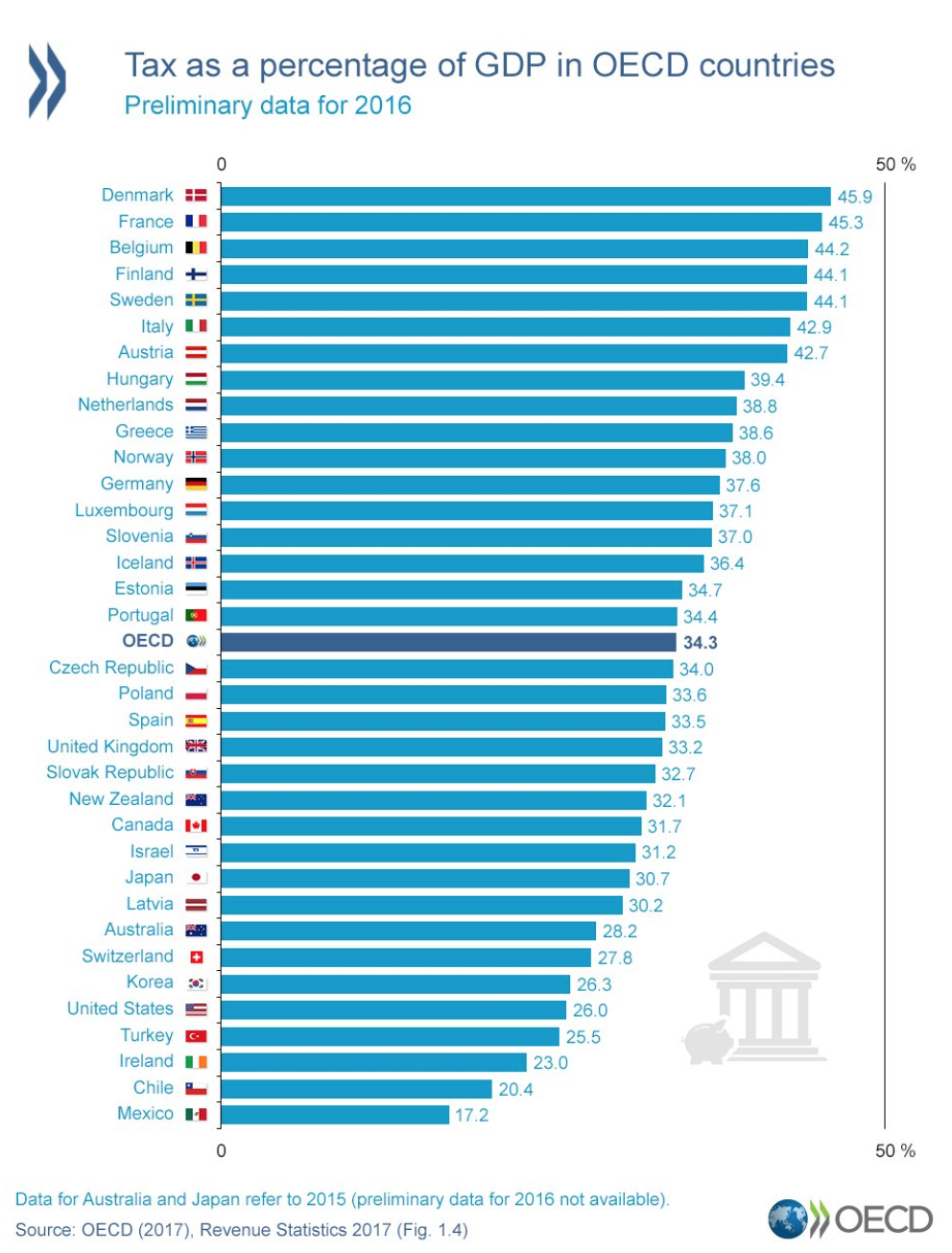 Le Graphique du Jour : En 2016, le Français a été une fois de plus le 2e résident le plus taxé du club des pays de l’OCDE. (Le Danois étant le Premier).