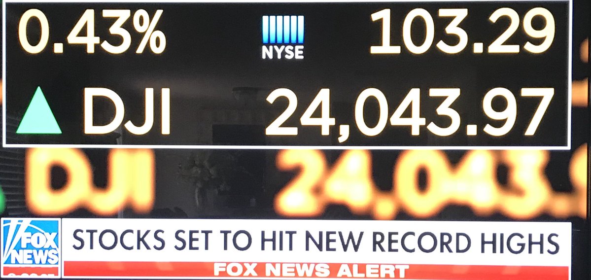 Dans les années 2000 on a beaucoup glosé et ironisé sur l’extrapolation possible d’un Dow Jones à 36000 points. Aujourd’hui avec un Dow à 24000 les 2/3 du chemin ont été faits et plus vraiment question d’en rire. Si l’on admet ce que nous faisons ici bien volontiers que la valeur de toute chose se mesure désormais à son cours de Bourse étalonné en Dollar US , on peut raisonnablement penser qu’un Dow Jones à 36000 points n’est plus un objectif irrationnel et qu’il devient surtout réalisable… Cela d’autant plus que réforme fiscale Trumpienne aidante les Multinationales oligarchique US vont rapatrier at home les 1000 milliards de dollars dormants dans leurs comptes off shore et procéder ainsi à de massifs rachats d’actions destinés à contrebalancer le fameux sell off tant attendu des affamés du crédit ( la fameuse dette sur marge) ….