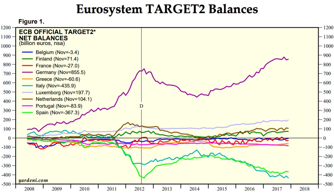L’excédent du commerce extérieur généré par le dumping a ramené l’économie allemande à un Südländern, et les soldes de TARGET2 ont été élevés à environ 1 000 000 000 000. Les consommateurs européens paient réellement leurs dettes aux banques qui transfère le risque de perte aux contribuables allemands