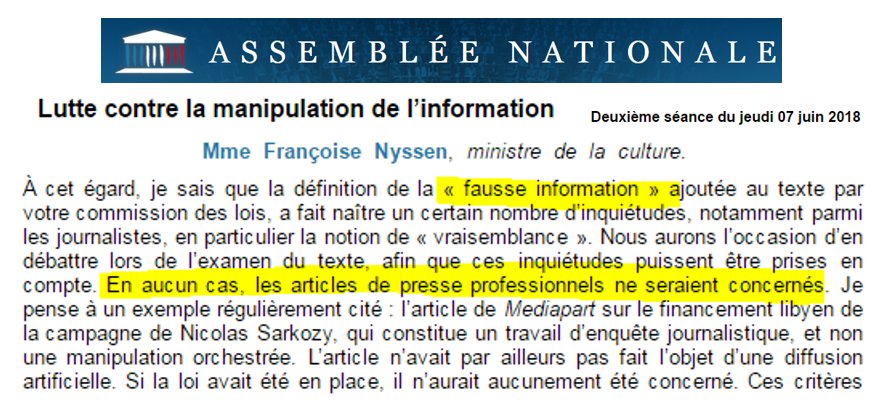 Devant les Assises du journalisme de Tours la ministre Françoise Nyssen a présenté la future loi comme « nécessaire pour protéger notre démocratie contre les influences extérieures ».